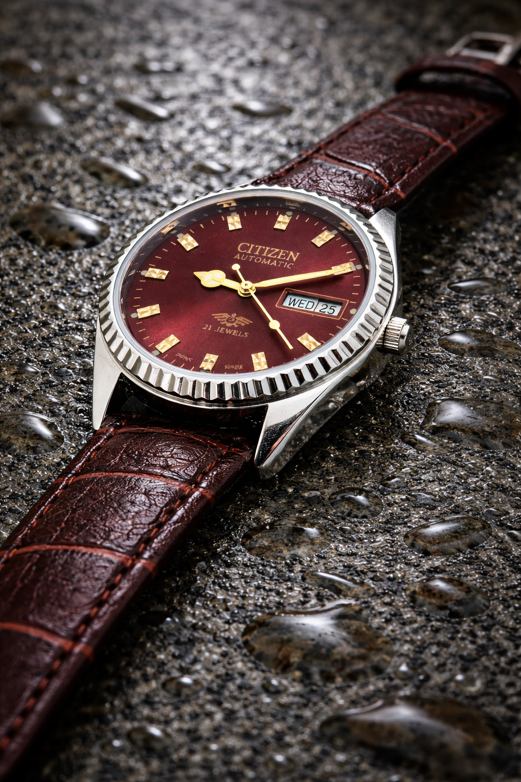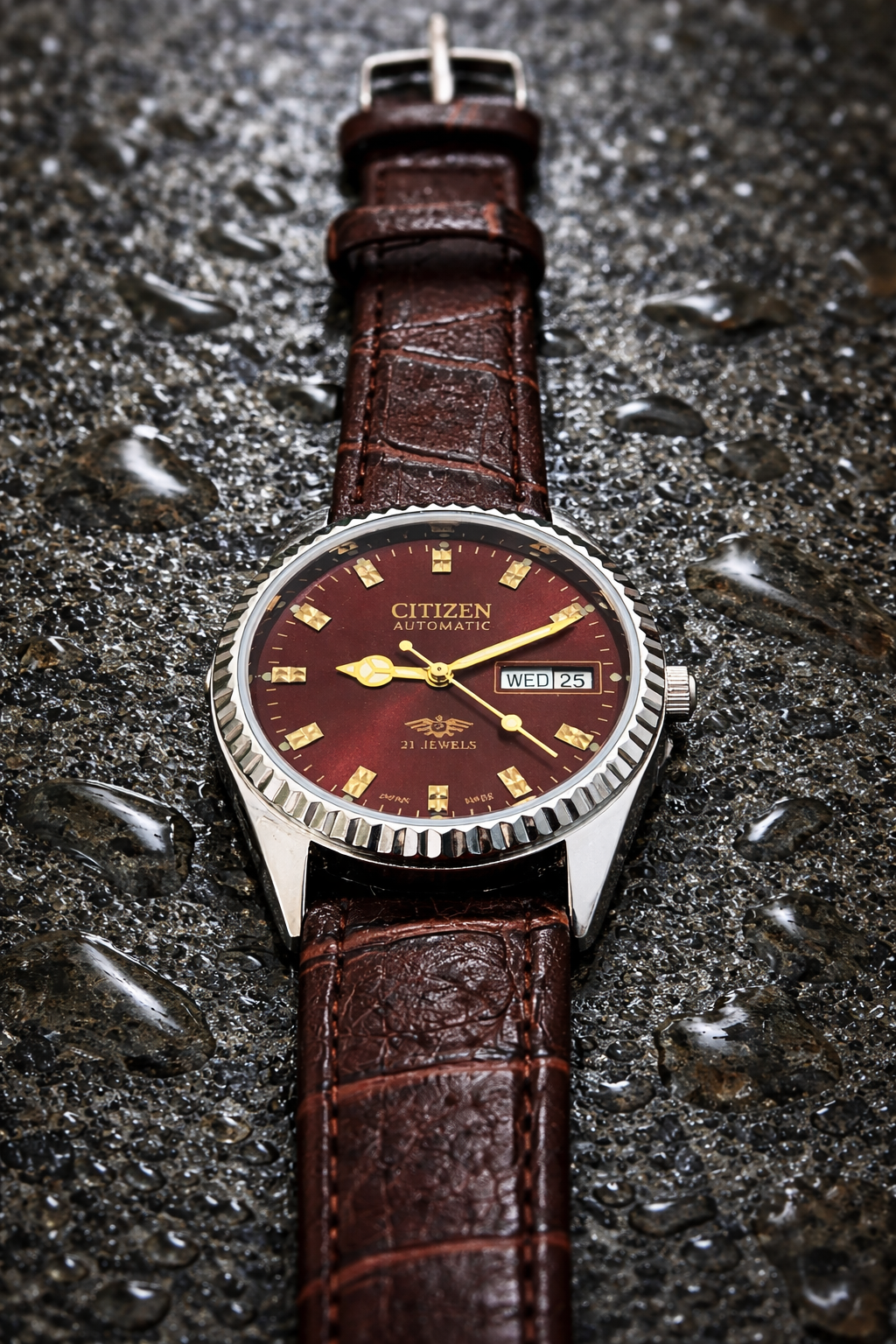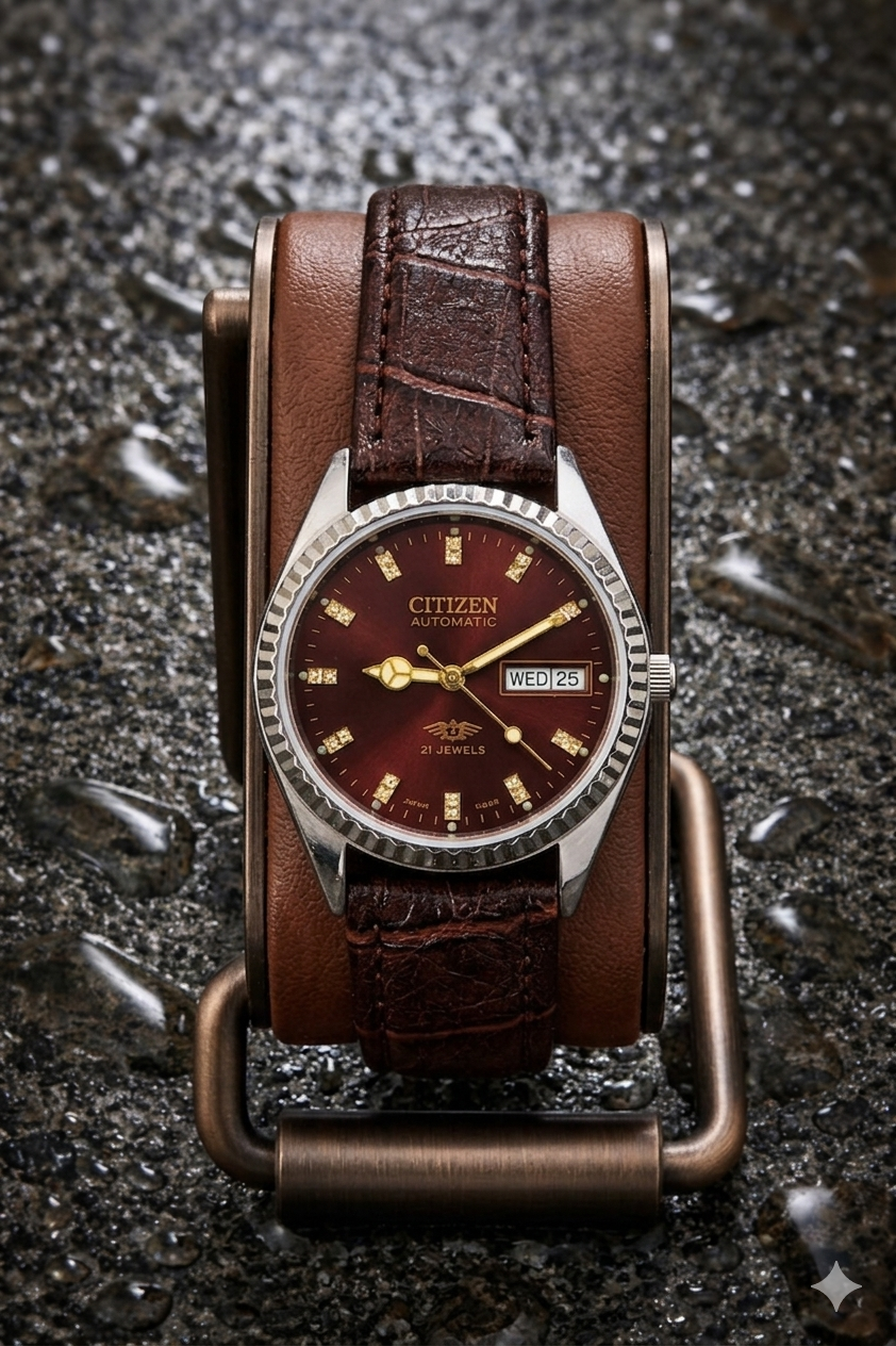 Vintage Citizen Automatic 21 Jewel Day/Date Maroon Dial Men's Wrist WatchVintage Citizen Automatic 21 Jewel Day/Date Maroon Dial Men’s Wrist Watch