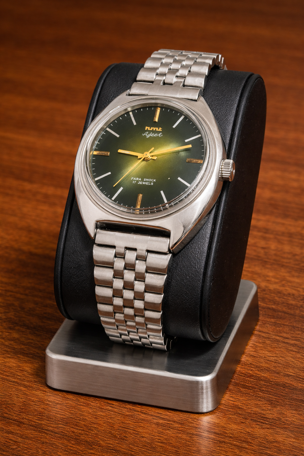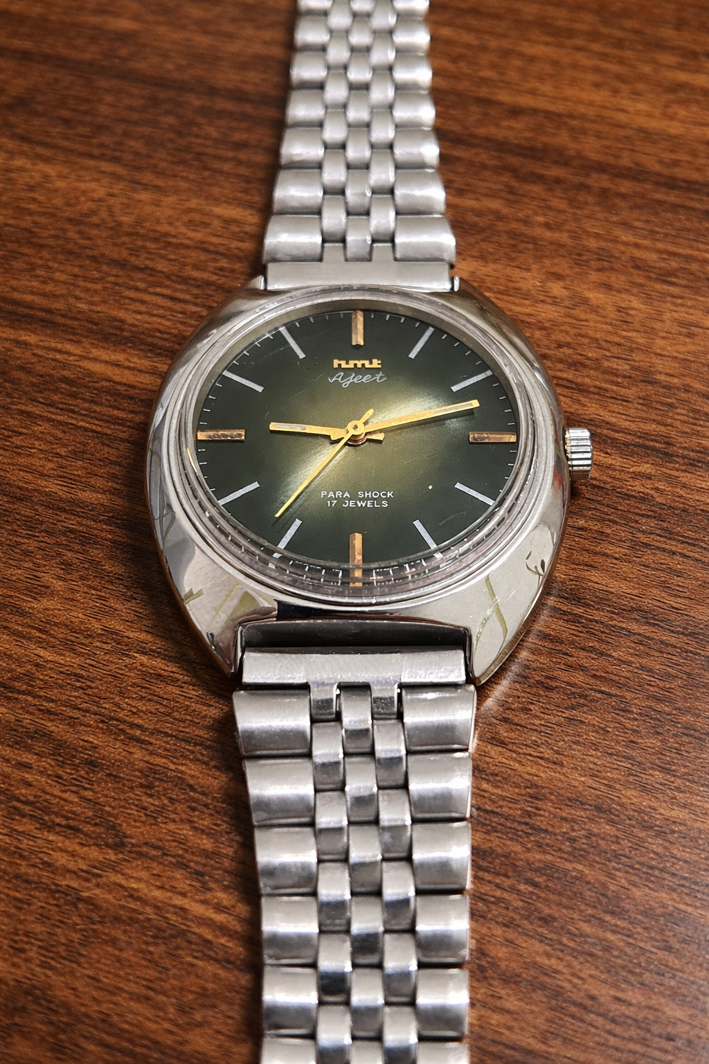 Vintage HMT Ajeet Hand Winding 17 Jewel Black Dial Men's Wrist WatchVintage HMT Ajeet Hand Winding 17 Jewel Black Dial Men’s Wrist Watch