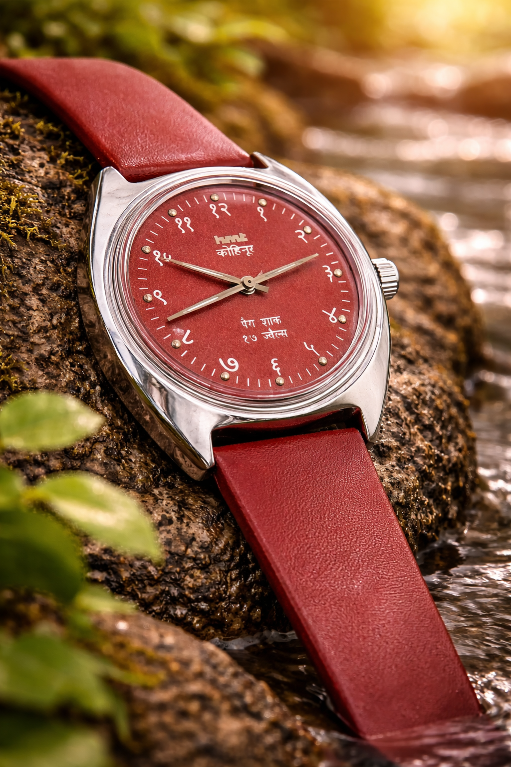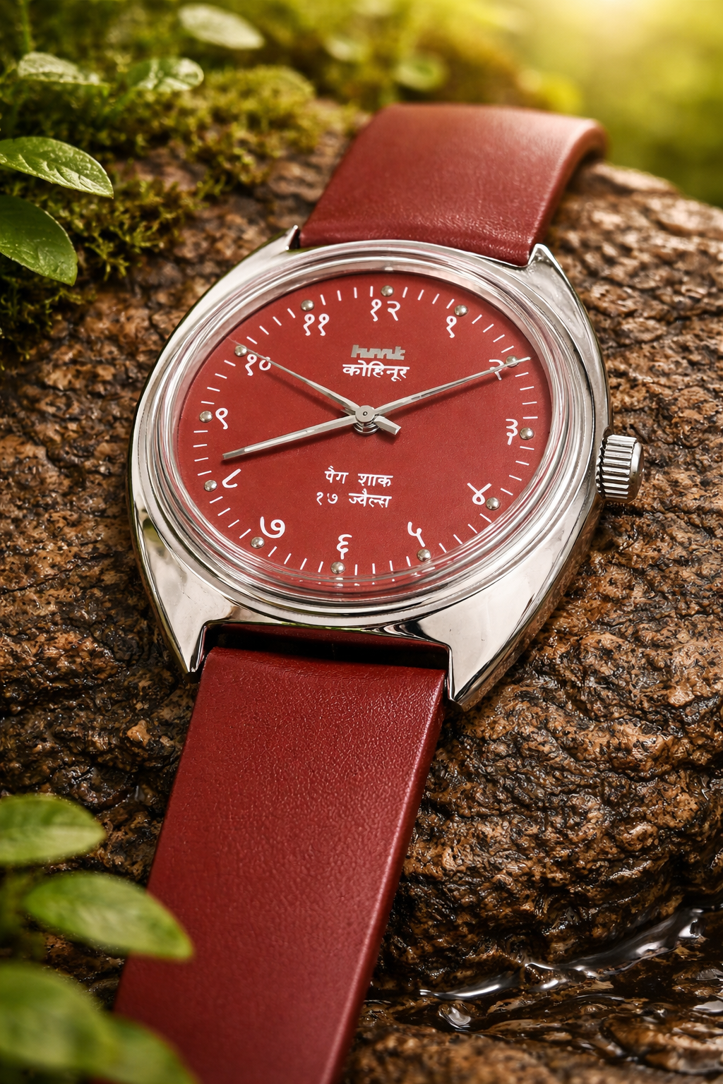 Vintage HMT Kohinoor Hand Winding 17 Jewel Maroon Dial Men's Wrist WatchVintage HMT Kohinoor Hand Winding 17 Jewel Maroon Dial Men’s Wrist Watch