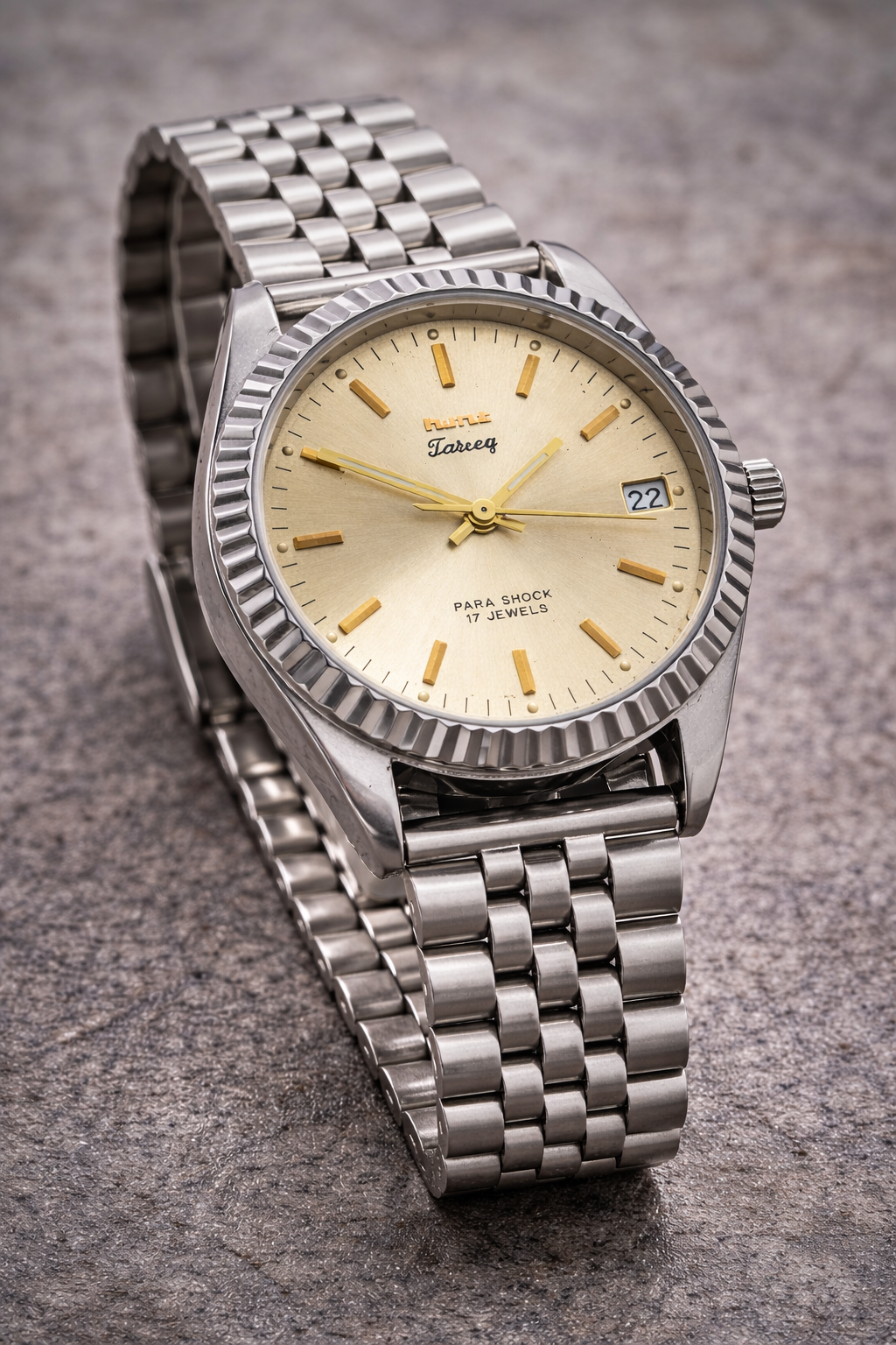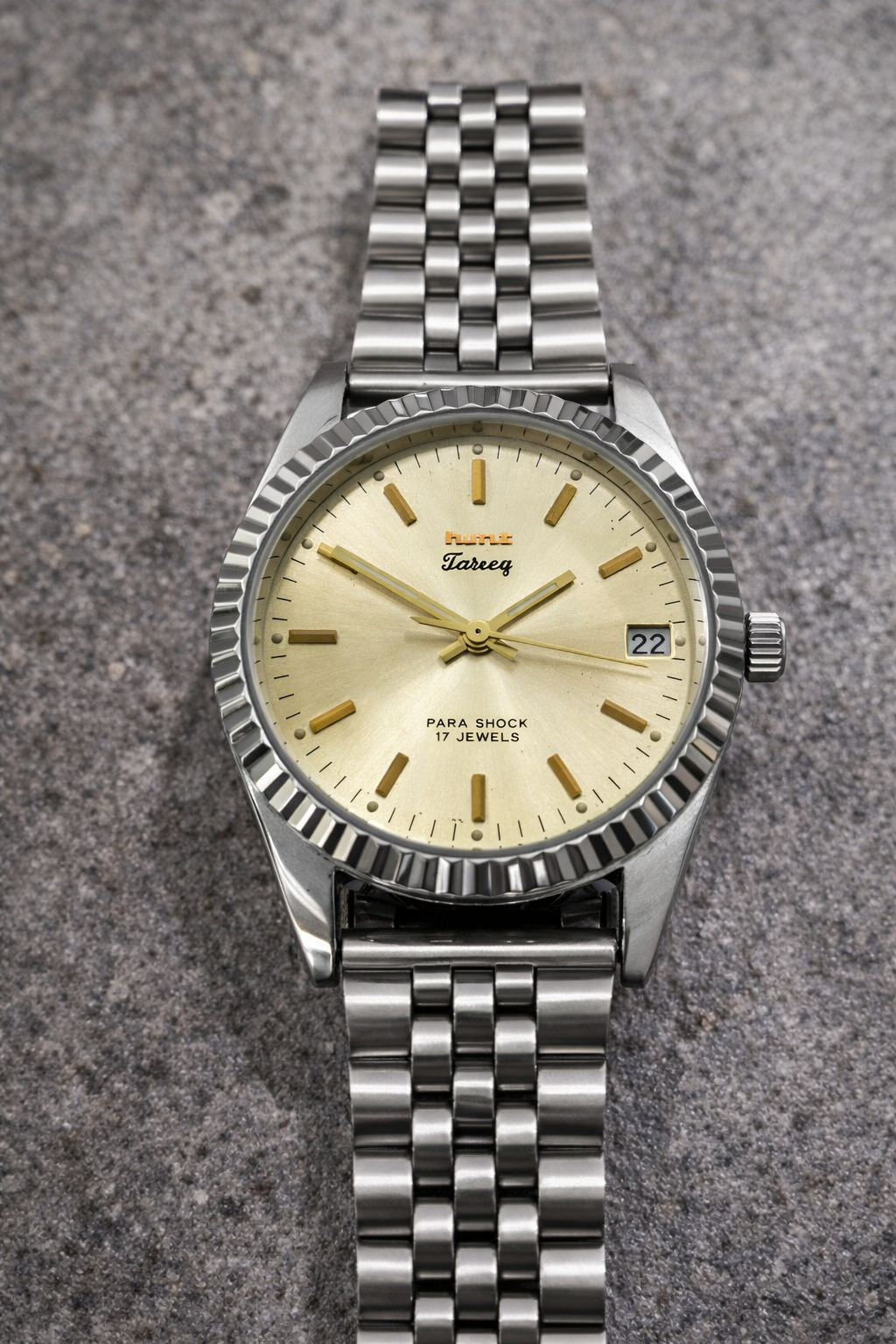Vintage HMT Tareeg Hand Winding 17 Jewel Golden Dial Date Men’s Wrist WatchAvailability: 1 in stock