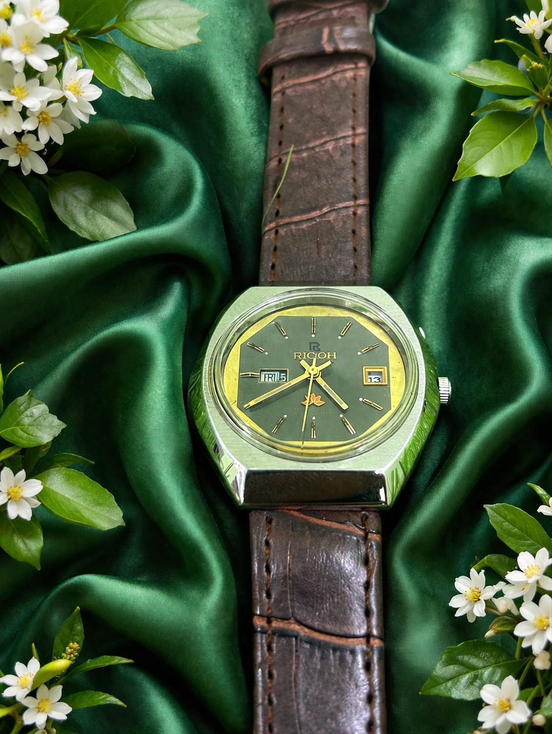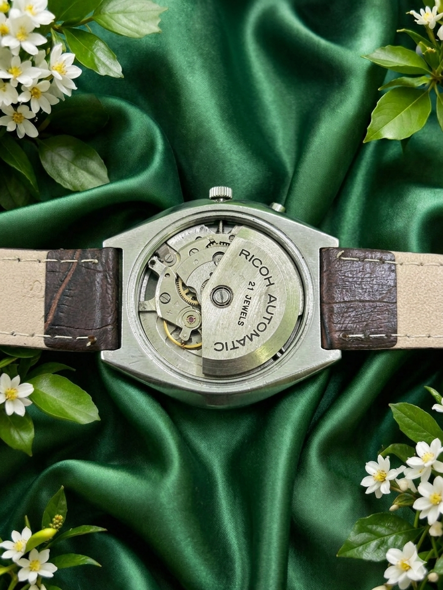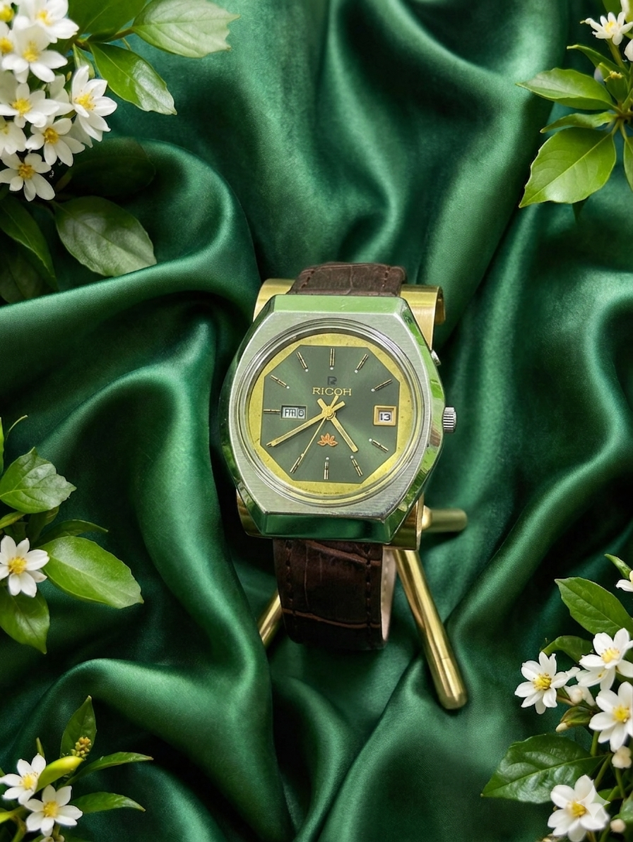 Vintage Ricoh Automatic Day/Date 21 Jewel Green Dial Men’s Wrist Watch